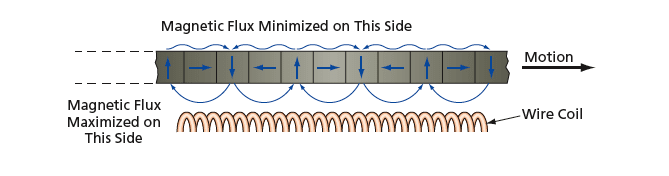 At a given radial and axial coordinate relative to the disk, the magnetic flux along any given direction varies approximately sinusoidally with the azimuthal angular coordinate. When the disk rotates, the temporal variation of the magnetic field intercepted by the stator coils induces electric currents, thereby generating a repulsive electromagnetic force. The circuits of the stator coils may be terminated with external inductors, the values of which are chosen to modify the phase shifts of voltage and currents so as to maximize the axial repulsion. At and above a critical speed that depends on the specific design, the repulsive force is sufficient to levitate the rotor. During startup, shutdown, and other events in which the rate of rotation falls below the critical speed, the rotor comes to rest on an auxiliary mechanical bearing.