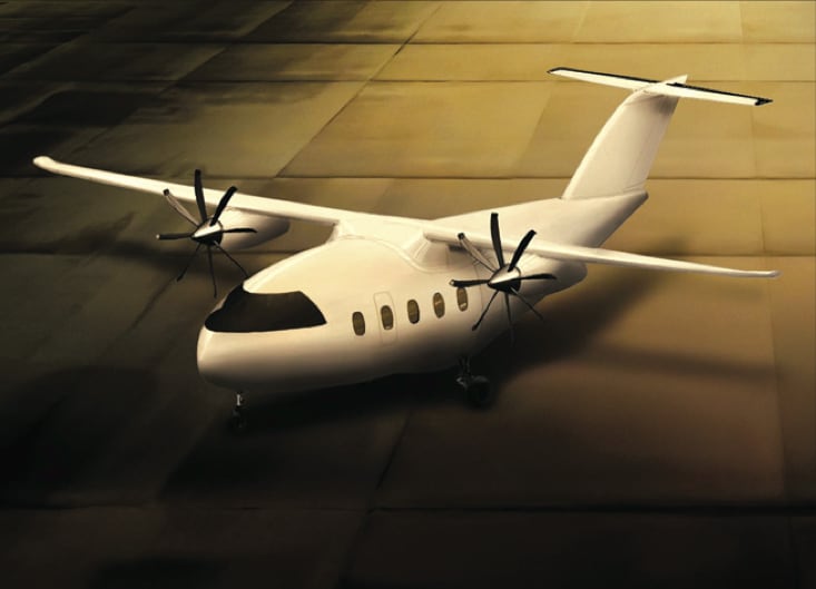 The GE Aviation team conceptualized a 20-passenger aircraft (Figure 1) that could reduce congestion at major metropolitan hubs by using community airports for point-to-point travel. Features include an aircraft shape that smoothes the flow of air over all surfaces, and electricity-generating fuel cells to power advanced electrical systems. The aircraft’s advanced turboprop engines sport low-noise propellers and further mitigate noise by providing thrust sufficient for short takeoffs and quick climbs.