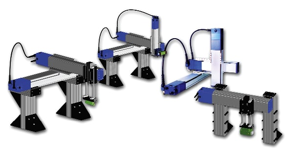 Robohand (Monroe, CT) has announced the Smart Linear Actuator (SLA) modular automation system featuring DIRECTCONNECT™ technology enabling integration of Robohand pneumatic slides, grippers, and rotaries. The SLA includes integrated servo/pneumatic motion control, an online Web configurator, networking capabilities, and weld field immune electronics. The SLA servo slide is available in models SLA-90, SLA-120, and SLA-150, with stroke lengths ranging from 100 mm to 1,400 mm, and maximum stroke speeds from 1 mm/s to 1,100 mm/s.