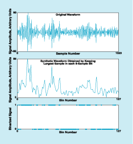 - The largest sample value within each bin is kept, and the other 7 samples are discarded, thus leaving 128 data points.