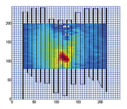 Both very large and very small strains can be detected with high precision by comparing the phase changes along the length of the fiber. Figure 3 shows strain data collected from a fiber zig-zag pattern integrated into a composite laminate (Figure 4). Strain data show delamination in the center of the composite article.