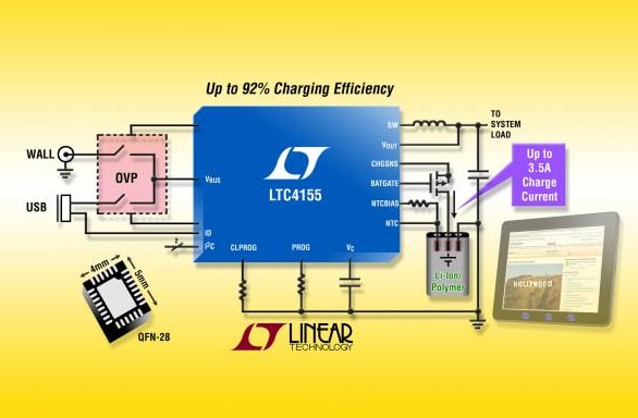 Linear Technology Corporation (Milpitas, CA) introduces the LTC4155, a high-power, I2C-controlled, high-efficiency PowerPath™ manager, ideal diode controller, and lithium-ion battery charger for single-cell portable devices such as tablet PCs, ultra-mobile PCs (UMPCs), personal video players, smart phones, digital cameras, PDAs, portable medical and industrial devices, and personal navigation devices.