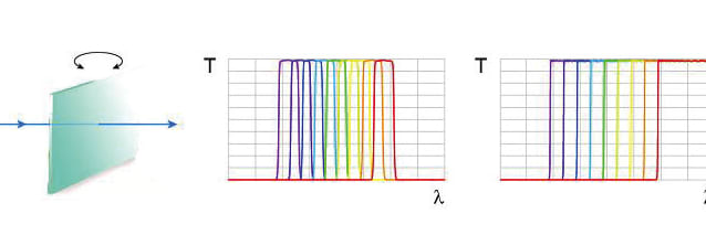 Thin-film filters are the ideal solution for wavelength selection in most optical systems due to their exceptionally high transmission (close to 100%), very steep spectral edges, and blocking of optical density 6 or higher over wide spectral regions for maximum noise suppression. However, until now thin-film filters have been considered “fixed” such that changing the spectral characteristics required swapping filters. Mechanical means to perform filter swapping, like filter wheels, exist but these are generally large in size, relatively slow (minimum switching times are typically 50 to 100 ms), and permit only a limited number of filters. (Typically, filter wheels can contain anywhere from 4 to 12 filters, depending on the instrument and application.) As a result, size, speed, and filtering function flexibility are all limited. Therefore, in order to overcome these shortcomings new innovations in filter technology are required.