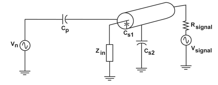 Shielding is only effective against electric fields if it provides a low impedance path to ground; a floating shield provides no protection against interference. When the shield in Figure 1 is grounded, capacitance Cs2 disappears and parasitic capacitances Cp and Cs1 are grounded, thus nearly eliminating the path between the noise source and the conductor. There can still be a small capacitance along this path due to imperfections in the shield, holes in a braided shield, or the length of conductor extending beyond the shield, so careful attention is necessary to avoid “leaky” shields.