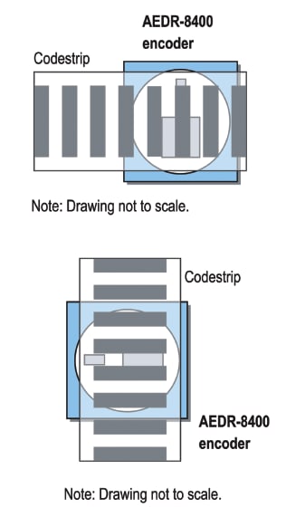 The codestrip surface must be reflective and specular (mirror-like) so that the image of the pattern is reflected back onto the photo-diodes of the AEDR-8400 en coder. Potential materials include metal and reflective film. One method to determine whether the code strip will work with the reflective optical encoder is by using a Scatterometer.