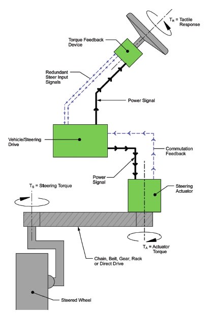 Nearly every industrial utility and personal mobility vehicle manufacturer has either introduced steer-by-wire or has an initiative underway to introduce it in the near future. Many of these companies are designing and sourcing their own systems. This can be a challenging task because of the need to specify a sensor, building or buying a system to provide torque feedback, providing a drive motor, and integrating these components with each other and with the vehicle.
