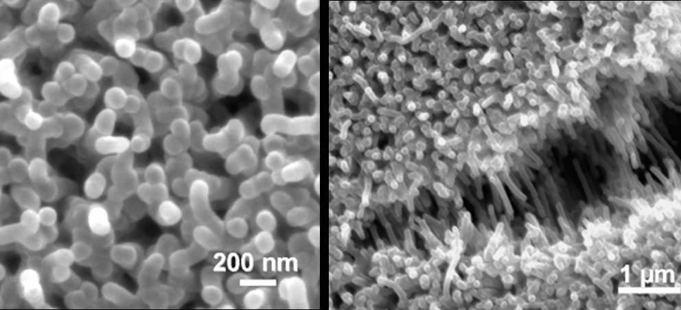 For the new device, the Rice team grew an array of 15-20 nanometer bundles of single-walled carbon nanotubes up to 50 microns long. Robert Hauge, a distinguished faculty fellow in chemistry, led the effort with former Rice graduate students Cary Pint, now a researcher at Intel, and Nolan Nicholas, now a researcher at Matric.