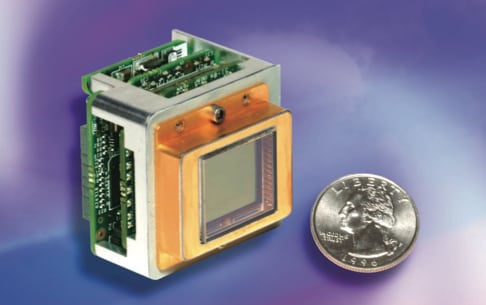 Figure 1 shows the SU640KTSX InGaAs SWIR imager from Sensors Unlimited, Inc. (Princeton, NJ) in its OEM configuration. This compact imaging sensor weighs less than 90g and is capable of full motion video at a 640 x 512 pixel resolution from daylight to starlight while operating uncooled at room temperature. The SWIR camera features extremely high-quantum-efficiency InGaAs technology with excellent spectral response from 0.9 to 1.7 microns and extending down to 0.7 microns in the NIR/SWIR version, a broad spectral range encompassing all the key battlefield laser wavelengths. Requiring as little as 2.5 watts of electrical power, the SU640KTSX is attracting a lot of interest for small UAV and man-portable applications.