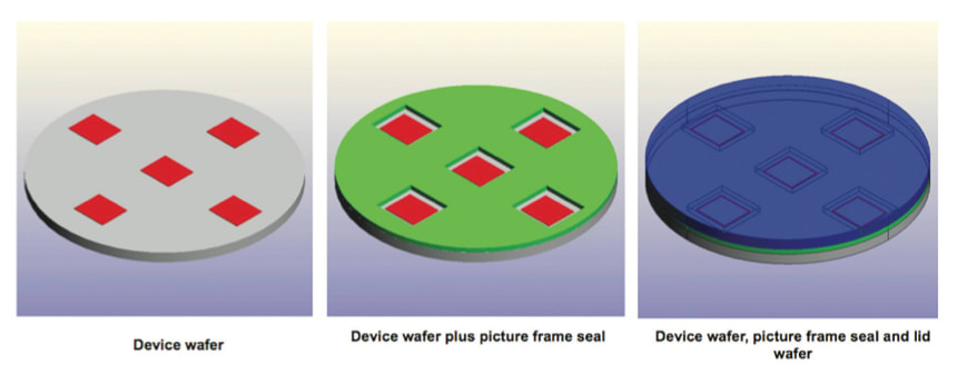 Wafer-level packaging of image sensors is conducted as follows (Figure 1). First, a picture frame seal of adhesive is placed around the optically active area on each die. Next a cover glass is attached. Finally the wafer is diced to free individually packaged die.