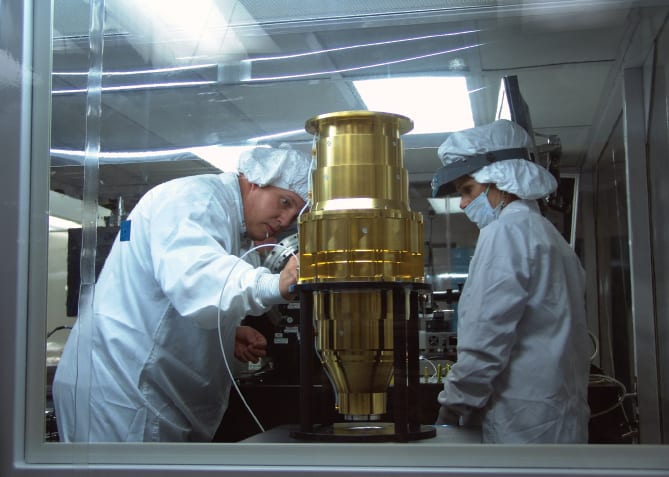 By implementing the correct angles, no light leaks occur, and lightning strikes can be seen much more clearly, and with less noise in the background. Design engineers were able to reduce the AOI on the filter by the critical halfdegree needed, which the all-spherical design could not have achieved. The new assembly also reduced the elements in Lockheed Martin’s original design by one large lens, resulting in reduced weight of the optics. The previous, all-spherical design used up the majority of the weight budget allocation and would have required the fabrication of the housings from an exotic material. The elimination of the single large lens allowed for the use of conventional aluminum for the large optical housings.