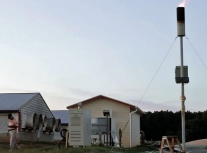 By capturing greenhouse gases from hog waste and burning them to run a turbine, the $1.2 million prototype system produces enough electricity to power 35 homes for a year. It is expected to be able to prevent the release of greenhouse gases equivalent to nearly 5,000 metric tons of CO2 per year.