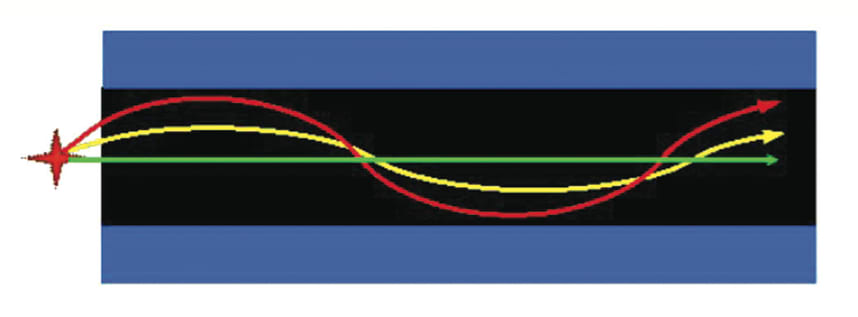 Unlike single mode fibers, multimode fibers carry more than one mode, traveling along the fiber with different velocities (Figure 2).