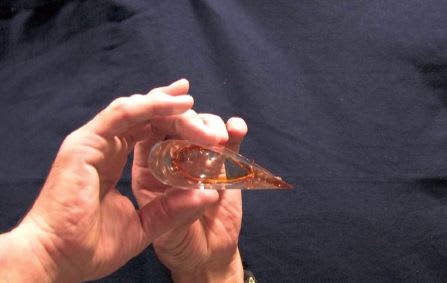 Figure 1. Astronaut Don Pettit Moves the 0 G Cup about the cabin without spillage while Steve Bowen takes a sip of tea. The cup is capable of holding beverages with an angled channel running along the wall from the bottom to the lip. In microgravity, a beverage is placed into the cup using the galley dispenser. The angled channel acts as an open passage that contains only two sides where capillary forces move the liquid along the channel until it reaches the top lip where the forces reach an equilibrium and the flow stops. When one sips the liquid at the lip of the channel, the capillary force equilibrium is upset and more liquid flows to the lip from the reservoir at the bottom to re-establish the equilibrium. This sipping process can continue until the total liquid contents of the cup is consumed, leaving only a few residual drops — about the same quantity as in a ceramic cup when it is drunk dry on Earth.