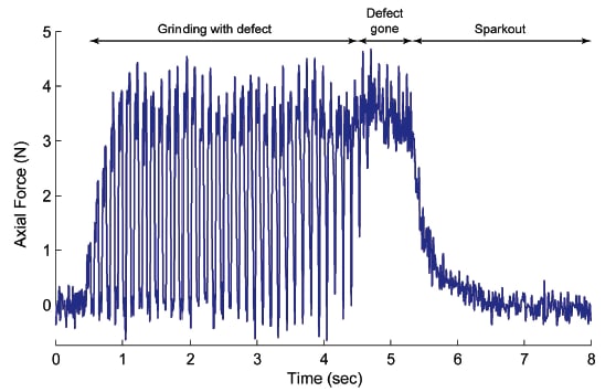 Several grinding phenomena are of particular interest to the precision grinding community, including workpiece contact detection, workpiece defect detection, grinding wheel loading and dressing condition, and coolant issues. The instrumented spindle provides the information required for the manufacturing engineer to pursue a deterministic approach to process control. Individual process variables may be studied systematically to obtain a clear understanding of the key operating parameters.