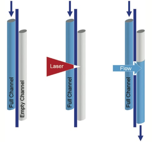 - The focused laser creates a microscopic perforation large enough for fluid flow, and