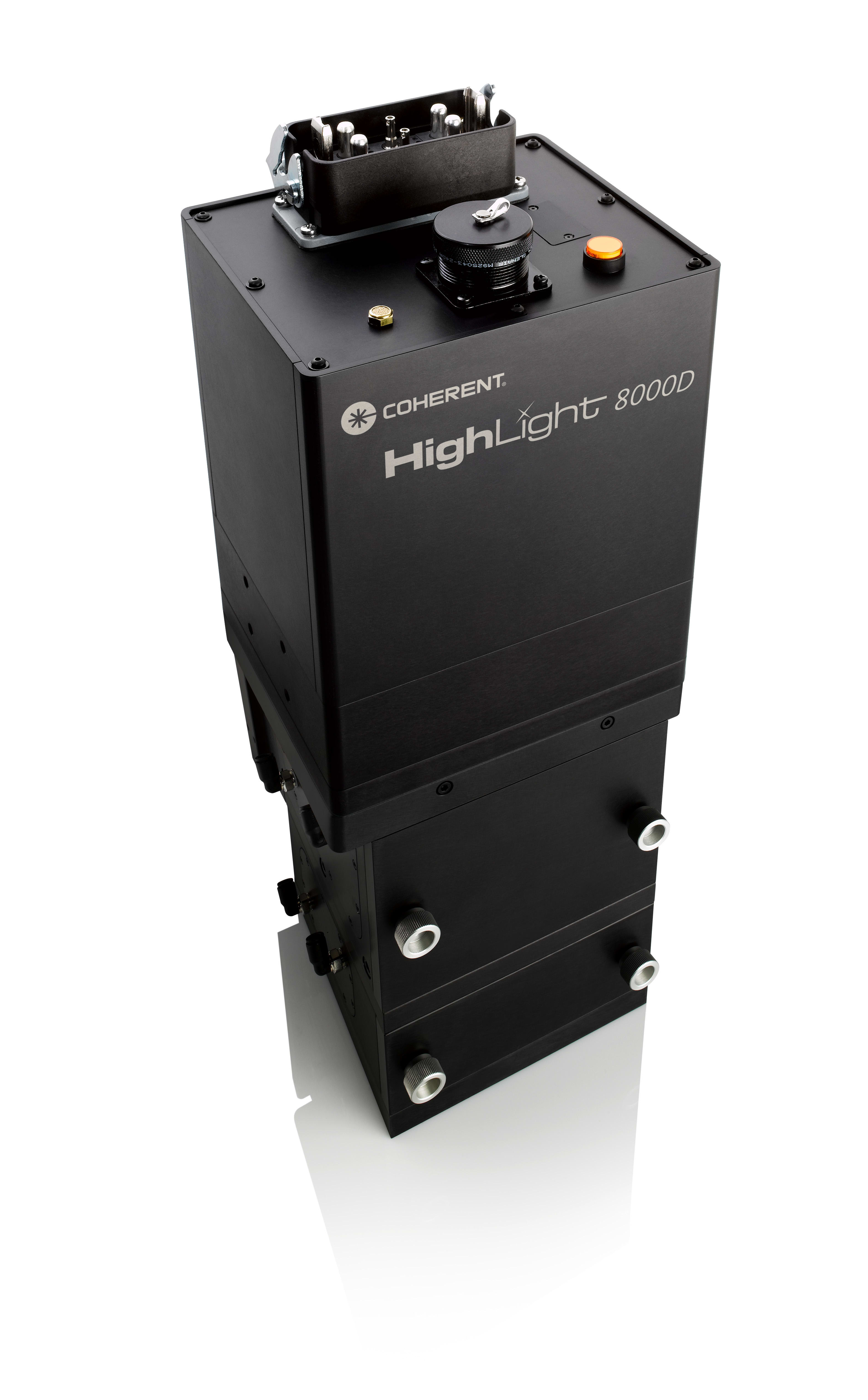 Diode Laser System A new range of diode laser systems from Coherent, Inc. (Santa Clara, CA) called the HighLight D-Series delivers both high power and an increased range of “smart” output beam shapes. In particular, the HighLight 8000D, with output power of 8kW, is the most powerful, industrial, direct diode laser system currently available with free space beam delivery. Free space beam delivery preserves the inherent brightness of the diode laser source and enables the use of an optical system with a large (275mm) working distance. The HighLight D-Series includes products with output powers of 2.8kW, 4kW, 6kW and 8kW (all at 975nm). The 6kW and 8kW models are each offered with line beam dimensions of 1mm width and either 6mm, 12mm or 24mm length. Lower power systems have additional beam lengths of 3mm, 4mm, or 5mm. Furthermore, an optional beam shaping accessory can expand the 1mm beam width dimension to 3mm, 4mm, 5mm, 6mm, 8mm or 12mm.