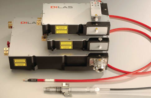 DILAS (Tucson, AZ) offers a line of conduction cooled fiber coupled modules supplying power levels of 30W, 40W, 50W, 100W, 200W, and 400W, at standard wavelengths of 790 nm to 976 nm based on a single bar or multi-bar 400μm fiber coupled diode laser modules. The company also offers 200μm SMA-fiber coupled devices at power levels of 30W, 50W and 120W, and 400μm fiber coupled modules in the wavelength range of 1380 nm and 1470 nm from 12W up to 80W power output from the fiber. The modules’ sealed housing is provided with a standard SMA 905 fiber connector that protects the diode laser bar and its micro optics against mechanical damage. All of the modules are available with an optional integrated pilot beam, power meter, temperature sensors, and fiber detection sensors. The fiber coupled diode laser modules are available in standard wavelengths of 808nm, 915nm, 940nm, and 980 nm.