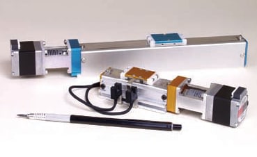 The Ball Screw Micro Stage positioning stages are available in four travel lengths: 40 mm, 60 mm, 120 mm, and 200 mm. Features include 0.01-mm repeatability, 0.02-mm/full step resolution, and maximum speed of 120 mm/sec. The maximum load for all ball screw stages is 39.2 N. The standard 28-mm stepping motor can be micro-stepped and can be supplied with an optional encoder for closed-loop operation. The Micro Stage linear positioning stages have stainless steel way covers, and can also be mounted vertically. Optional end-of-travel limit switches are adjustable.