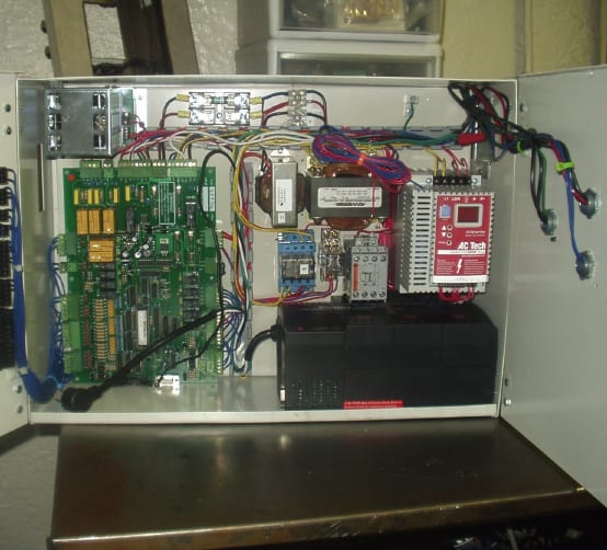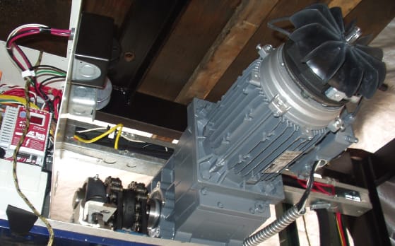 At the core of the elevator’s lifting and lowering system is Lenze/AC Tech’s GKR bevel gear motor, which was chosen by the ADVANTAGE engineers because of its smooth and quiet operation. A right-angle motor with water-resistant bevel toothing, the GKR has cool-running gears, which are especially appropriate for lower-torque applications.