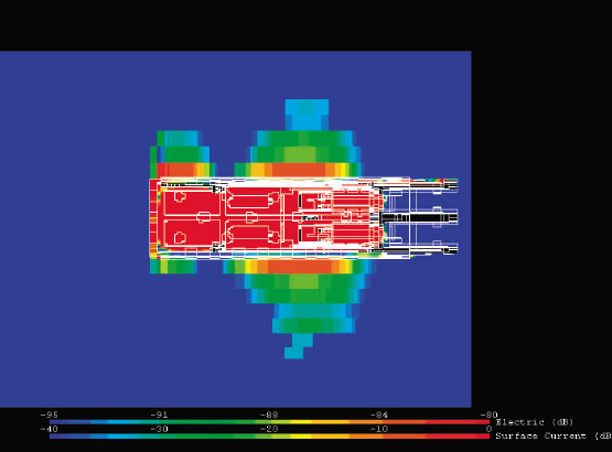 The field profiles enable a user of Flomerics FLO/EMC to understand how the fields are escaping from a device and to focus any design modifications that need to be made in the correct area. Further investigation of these output files would enable a designer to fully identify the path the field was taking and enable corresponding design changes to be implemented. The design information generated for the optical transceiver in this example took only a matter of hours. Generating this amount of data without the analysis software would take days in the lab and the information gathered would be much less complete.