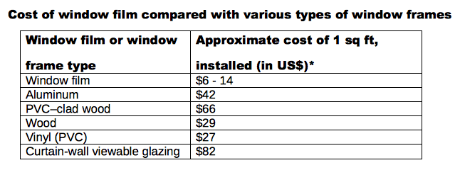 A more environmentally friendly option: When looking to upgrade windows, it may seem most simple to replace them with newer models. But think of all the waste generated from extracting existing windows; the glass, aluminum, and wood from the removal usually end up in a landfill. Retrofitting with window film generates little to no environmental waste.