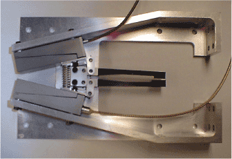 The shutter (see figure) includes two commercial piezoelectrically driven flexure stages that produce a travel of 0.5 mm. Levers mechanically amplify the travel to the required level of 1 cm. Problems that remained to be addressed at the time of reporting the information for this article included lifetime testing and correction of a tendency for shutter blades to bounce open.