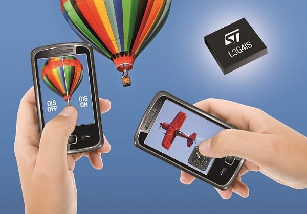 STMicroelectronics (Geneva, Switzerland) has introduced the market’s first dual-core gyroscope capable of handling both user-motion recognition and camera image stabilization. ST’s dual-core gyroscope employs separate output paths optimized for the two different functions in a 4x4x1 mm package. Addressing power constraints in battery-operated portable devices, the new gyroscope includes power-down and sleep modes and an embedded FIFO memory block for smarter power management. The sensor outputs data through independent I2C and SPI interfaces and offers additional digital embedded features, such as configurable low- and high-pass filters. The gyroscope embeds a temperature sensor and can operate with any supply voltage over the range of 2.4 to 3.6V.