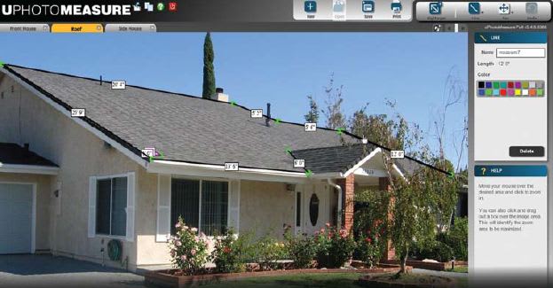 For outdoor landscaping or roofing projects, a satellite image can be used in uPhotoMeasure to calculate measurements. As in many other applications, the product can potentially save time and expense because there is no need to visit a site and use a measuring tape; users simply obtain a photograph of the project and then analyze it in uPhotoMeasure. A photo can be shared among multiple parties, an estimate can be made, and the proper amount of materials can be obtained.