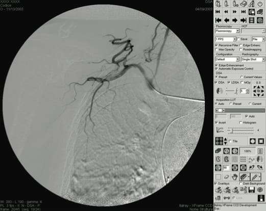Radiology and fluoroscopy applications present several challenging machine vision requirements. One is the need to acquire and process in real time huge sequences of hundreds of images so that doctors can review them on the fly, a task that is not easily accomplished by many vision systems. In Digital Subtraction Angiography (DSA), for example, the difference between the acquired image and a reference image is displayed on-screen so that doctors can trace the path of the contrast media in the vessels. As the original images are being processed, they must also be stored simultaneously to the system’s hard disk.