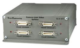 Vivid Engineering, Shrewsbury, MA, offers the CLV-411 Camera Link video splitter that interfaces one camera to up to four frame grabbers using standard Camera Link cables. This enables the use of multiple frame grabbers for applications requiring parallel or distributed processing or camera sharing. The splitter incorporates high-speed 85-MHz interfaces and supports Camera Link base configuration. Medium configuration applications are supported using two splitters. Multiple splitters may be cascaded for large parallel processing systems.