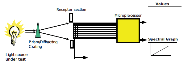 Instrumentation that employs the spectroradiometric method are most ideal for measuring spectral energy distribution of the light source, which determine not only the radiometric and photometric quantities, but also the colorimetric quantities of light. These instruments record the radiation spectrum of the light source and calculate the desired parameters, such as chromaticity and luminance. Dispersion of light is usually accomplished in the spectroradiometer by means of prisms or diffraction gratings. The exact CIE Vλ curve and CIE color-matching curves are stored in the software and are used to process the data from the measured spectral energy distribution of the light source under test. Hence, the measurement error associated with photometers and filter colorimeters is avoided in spectroradiometers. However, adequate sensitivity, high linearity, low stray light, low polarization error, and a spectral bandpass resolution of 5nm or less are essential for obtaining good accuracy.