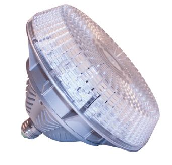 Each 52W lamp replaces up to a 175W metal halide bulb and has an estimated 50,000 hour life. The unique design includes an active cooling feature comprised of a Delta 70,000 hour fan. Other features include: 5700K Daylight (other K’s available); 3200 Lumens; Dual Voltage (120-277V).