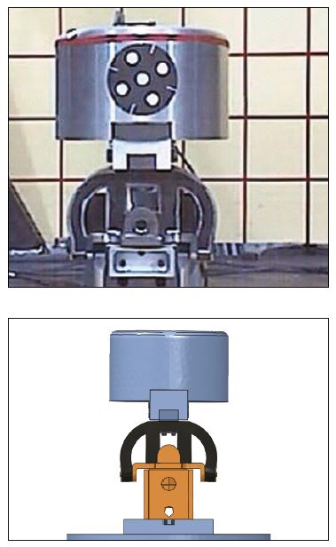As an example of the component testing, consider the experiment and simulation of the lumbar spine assembly. The test configuration and model are shown in Figure 4. The lumbar spine is a critical component in the dummy as it plays a significant role in the upper body kinematics under lateral impact loads. Sledtype impulse tests were conducted for the validation of the lumbar spine.