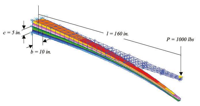 The first step is to install a series of strain sensors on the structure’s surface in such a way as to measure bending strains at desired locations. The next step is to perform a simple ground test calibration. For a beam of length l (see example), discretized into n sections and subjected to a tip load of P that places the beam in bending, the flexural rigidity of the beam can be experimentally determined at each measurement location x. The bending moment at each station can then be determined for any general set of loads applied during operation.
