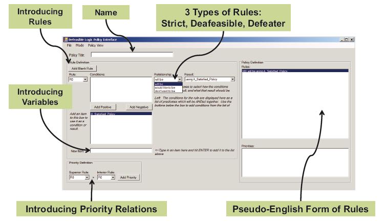The present methods have inherent inefficiency and are not fully automatic, which heavily restricts their practical applications. The new method is based on an efficient algorithm. The new engine utilizes defeasible logic to describe communication policy constraints and priorities. Defeasible logic (see figure) is nonmonotonic, and contains three different types of rules: strict rules, which are strict “if/then” statements; defeasible rules that are “if this, then probably that” statements; and defeater rules that contradict the outcomes of defeasible rules.
