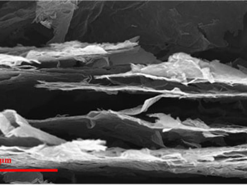 Koratkar’s solution was to use a known technique to create a large sheet of graphene oxide paper. This paper is about the thickness of a piece of everyday printer paper, and can be made nearly any size or shape. The research team then exposed some of the graphene oxide paper to a laser, and other samples of the paper were exposed to a simple flash from a digital camera. In both instances, the heat from the laser or photoflash literally caused mini-explosions throughout the paper, as the oxygen atoms in graphene oxide were violently expelled from the structure. The aftermath of this oxygen exodus was sheets of graphene pockmarked with countless cracks, pores, voids, and other blemishes. The pressure created by the escaping oxygen also prompted the graphene paper to expand five-fold in thickness, creating large voids between the individual graphene sheets.