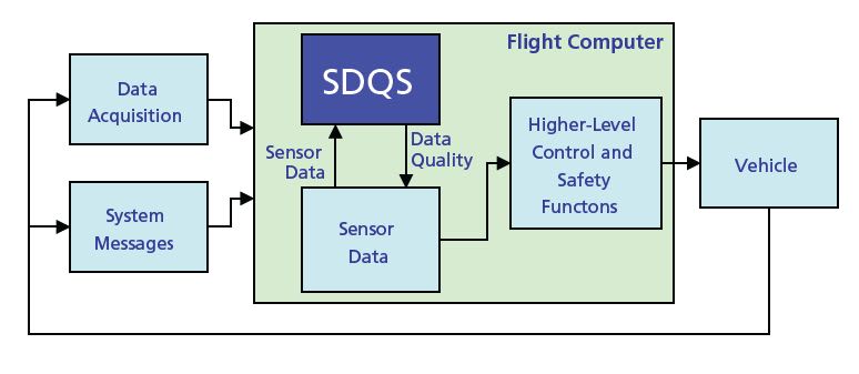 At a high level, SDQ is called by the flight computer, as required each cycle, to qualify a specific sensor or set of sensors. SDQ first determines the update-rate of the data, and obtains the specified data from the sensor data table. SDQ then consults the data provided by the Mission Manager Function to determine the appropriate subset of pre-defined algorithms, thresholds, and parameters to be used in qualifying specified sensor data. Next, appropriate algorithms are applied to the data. If a given algorithm determines that the data is faulty, the associated data signal accrues a strike from that algorithm for the current flight computer cycle, and the algorithm or algorithms that failed the data are recorded. Having run all applicable fault detection algorithms, the strike counters for each of the applicable algorithm/sensor pairs are then tested for the persistence of any failures. Sensors associated with data that meets persistence criteria are flagged as permanently failed.