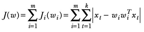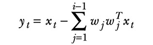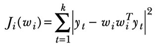 where m is the number of principal components, k is the number of sampling time intervals (the number of measurement vectors), xt is the measured vector at time t, and wi is the ith principal vector (equivalently, the ith eigenvector). The term
