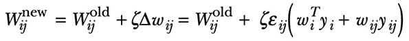 where wij is an element of the weight matrix and ζ is the dynamic initial learning rate, chosen to increase the rate of convergence by compensating for the energy lost through the previous extraction of principal components. The value of the dynamic learning rate is given by