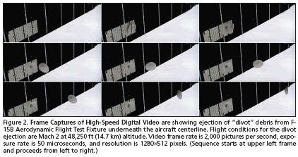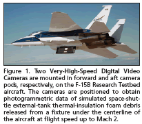 The first use of this system was in support of the Space Shuttle Return to Flight effort. Data were needed to help in understanding how thermally insulating foam is shed from a space-shuttle external fuel tank during launch. The cameras captured images of simulated external tank debris ejected from a fixture mounted under the centerline of the F-15B aircraft. Digital video was obtained at subsonic and supersonic flight conditions, including speeds up to Mach 2 and altitudes up to 50,000 ft (15.24 km). The digital video was used to determine the structural survivability of the debris in a real flight environment and quantify the aerodynamic trajectories of the debris.