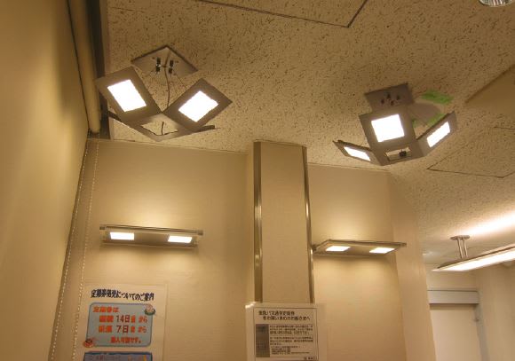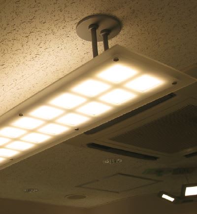 This project represents the first use of organic light emitting diode (OLED) technology in a train station in Japan for general lighting purposes. Of the 29 OLED lighting fixtures at Jiyugaoka Station, 19 are installed at the ticket gate office and ten in the train pass office. These fixtures incorporate 275 Panasonic OLED lighting modules, which can reduce energy use by up to 85 percent compared to mini-halogen fixtures and operate up to ten times as long as an ordinary incandescent lamp (approximately 10,000 hours).