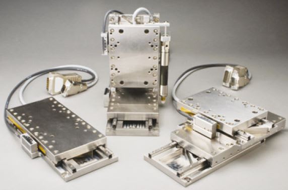 The stages are available in aluminum-based versions with an optional single-phase motor. Operation in a vertical orientation is possible without requiring a counterbalance. Steel-based versions are available for use in demanding environments. For XY sample positioning, sustained throughput of up to 2,000 moves per minute is possible. Four options, with 25 mm, 50 mm, 100 mm, or 150 mm travel, are available. An integral anti-creep linear guideway eliminates the need for homing moves typically required to reset standard crossed roller bearing retainer cages.