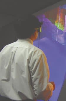 InterSense's IS-900 Virtual Environment Tracking system was recently installed at Glenn Research Center for use in a 3-D virtual immersive display wall. Combined with 3-D fluid flow analysis software, the stereo display wall is used to gain better understanding of 3-D flow modeling of jets, turbines, and Space Shuttle aerodynamics. Simulated failure analysis is also performed, such as what happens when a jet turbine blade is impacted by a foreign object.
