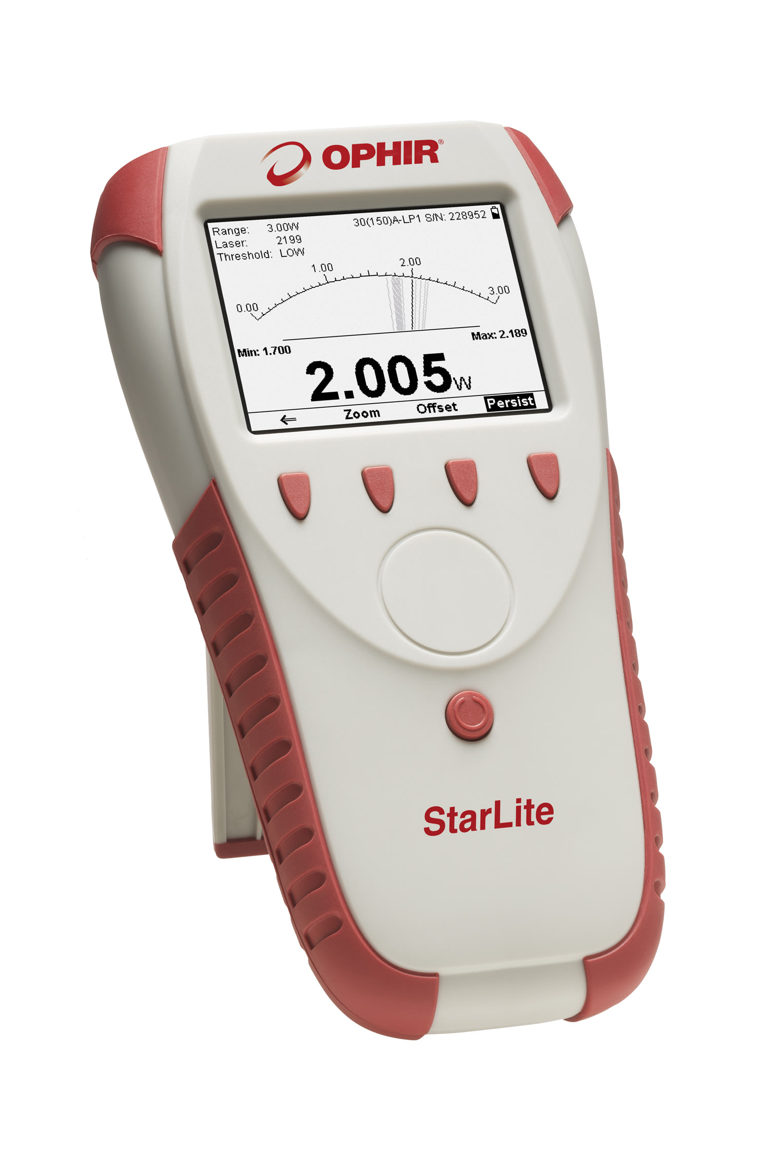 Ophir Photonics Group (North Logan, UT) recently introduced a new low cost laser power/energy meter called StarLite that provides both digital and analog screen displays. A compact, handheld unit, StarLite displays a variety of beam measurements, including power, single shot energy, energy and frequency of high repetition rate lasers, and beam size. The meter provides a large 320x240 pixel display with 16mm digits for increased legibility, and monitors power from pW to many kW or energy from pJ to hundreds of Joules. StarLite monitors power and energy for all Ophir thermopile, pyroelectric, and photodiode sensors. The meter can also monitor laser beam size and accurately track beam position to fractions of a mm when used with Ophir’s BeamTrack, a unique series of thermal detectors that combine multiple functions in one device: power, energy, beam position, and beam size.