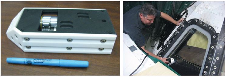 The Space Shuttle Orbiter windows were damaged both by micrometeor impacts and by handling, and required careful inspection before they could be reused. The launch commit criteria required that no defect be deeper than a critical depth. The shuttle program used a refocus microscope to perform a quick pass/fail determination, and then followed up with mold impressions to better quantify any defect. However, the refocus microscope is slow and tedious to use due to its limited field of view, only focusing on one small area of glass at a time. Additionally, the unit is bulky and unable to be used in areas with tight access, such as defects near the window frame or on the glass inside the Orbiter due to interference with the dashboard. Bulky camera equipment was needed to acquire images for later processing and storage. The long depth of field of the refocus microscope provided crisp images of the defect, but didn’t provide the user with a feel for depth of the defect since all parts of the image appear in focus.