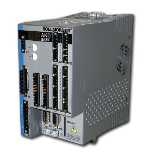 Kollmorgen (Radford, VA) has introduced the AKD® PDMM and AKD® BASIC Ethernet-based servo drives that enable machine builders to standardize on a single drive family with a common Graphical User Interface (GUI) across the power range (up to 24 Arms continuous and 48 Arms peak). The servo drives are available in a range of connectivity and control options including EtherCAT®, EtherNet/IP™, CANopen®, Profinet, and analog, and pulse train command control options.