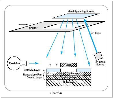 A typical first-sublayer metal is Pt, Pd, Cr, Mo, Ti, W, or an alloy of two or more of these elements. A typical metal for the second sublayer or for an undivided first layer is Al at a thickness ≥1 nm or Ir at a thickness ≥5 nm. Proper choice of the metal for a second sublayer of a first layer makes it possible to use a catalyst that is chemically incompatible with the substrate.