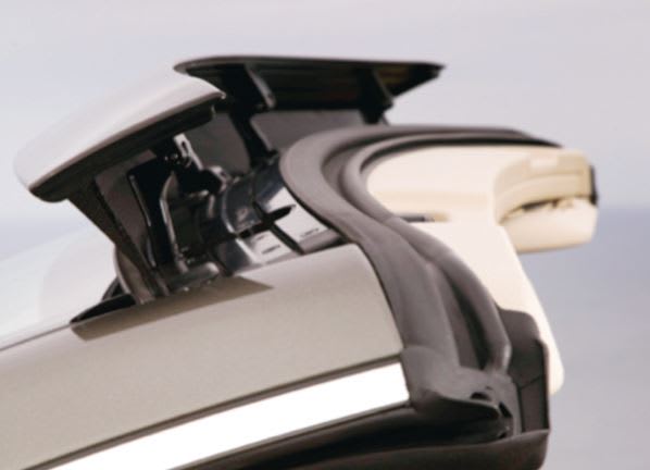 The AIRCAP® automatic draft stop, offered in the Mercedes-Benz E-Class convertibles, is distinctively different from conventional angular wind deflectors. It is entirely embedded into the car body and completely concealed into the windshield frame when deactivated. In its activated state, an aerodynamically shaped wind deflector extends on top of the windshield without disfiguring the automobile’s aesthetic side line.
