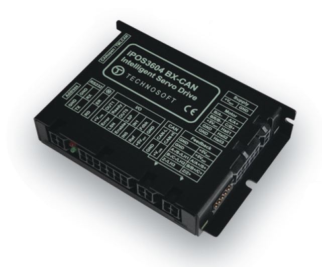 Technosoft (Neuchatel, Switzerland) has announced the iPOS3602 BX-CAN and iPOS3604 BXCAN closed-frame intelligent drives. Equipped with a CAN interface, the drives control rotary or linear brushless, DC brush, and step motors of powers up to 144W and 36V nominal voltage. They drive 2 A or 4 A continuous currents, and 3.2 A or 10 A peak currents at a supply voltage ranging from 12 to 36 Vdc, with a PWM of 20 kHz frequency. The servo drives offer single- or multiple-axis control functions such as master-slave or standalone operations. They embed motion controller, drive, and PLC functionality in one unit.