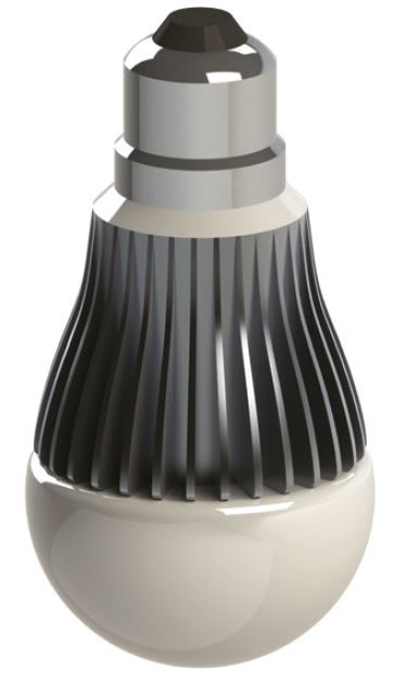Veryst Engineering performed a steady state conjugate heat transfer simulation on a generic LED light bulb to illustrate a few of the issues associated with appropriate thermal design. An image of the bulb is provided in Figure 1. The simulation models the single, vertically oriented bulb in a cylindrical enclosure with constant ambient temperature. Conduction between the LED and bulb body, convection within the enclosure, and radiation between surfaces are included.